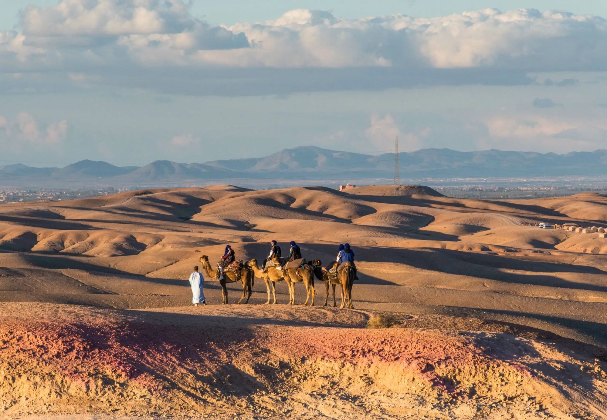 At 30km from Marrakech, you will head to the Agafay desert for an unforgettable evening in the Marrakech desert where you will experience an extraordinary dinner while enjoying a meal under the stars as the sun sets over the dunes, all while tasting local products such as a freshly prepared tagine followed by mint tea with Moroccan pastries.